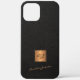 Trendy luxury exclusive looking monogrammed iPhone case featuring a faux gold square over a stylish classy black leather look (printed) background. +++++++++++ Personalise it with your white script signature name and monogram name initials.