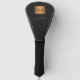 Trendy luxury exclusive looking monogrammed gold head cover featuring a faux gold square over a stylish classy black leather look (printed) background. +++++++++++ Personalise it with your white script signature name and monogram name initials.