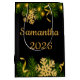Add a touch of sophistication to every gift with our Elegant Black & Gold Personalized New Year Gift Bag! Featuring a luxurious black velvet-inspired background with golden pine branches, sparkling snowflakes, and festive streamers, this gift bag can be customized with names, messages, and the year “2026” for a truly personal presentation. Perfect for family celebrations, children’s New Year parties, or elegant holiday gatherings.