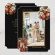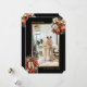 Elegant black and gold photo Merry Christmas card featuring a black and gold photo frame decorated with Christmas ornaments and flowers. Easily personalize this botanical photo holiday card with your photo and text.
