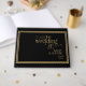 An Elegant black and gold guest book for your wedding. Black with double gold frames on front and back. Personalised with the name of the bride and groom and their wedding date. The back says "Happily Ever After Begins Here". This text is fully editable and can optionally be changed or deleted to suit your needs. This will become a nice keepsake if your encourage your guests to leave not only their name and address, but their best wishes or words of wisdom for the newlyweds.