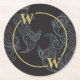 Elegant Black Gold Paisley Monogram Round Paper Coaster