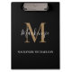 Elegant Black Gold Personalised Monogram Name Clipboard