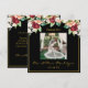 Elegant Black Gold Photo Burgundy Floral Photo Thank You Card