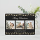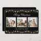 Elegant black and gold photo Merry Christmas card featuring a photo collage and holly on a black background. Easily personalise this holiday card with your photos and text. The background can be changed to any colour.
