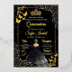 Celebrate your daughter's milestone with this Elegant Black Gold Photo Quinceañera Invitation, perfectly designed for a royal transition into womanhood. Featuring a luxurious black background adorned with golden roses, shimmering butterflies, and a majestic crown, this design exudes sophistication. The standout feature is the ability to upload a custom photo of the birthday girl on the back, making it a cherished keepsake for family and friends. Ideal for Mis Quince celebrations with a Masquerade or Royal Theme, this template is fully editable to include your specific church and reception details. Give your Sofia Isabel the grand announcement she deserves with this high-end, personalized stationery.