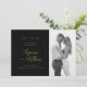 This sophisticated design boasts a luxurious black background accented with shimmering gold details, creating a timeless and elegant look. Simply upload your cherished photo and watch it become the centerpiece of this unforgettable announcement.