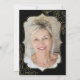 Elegant black and gold surprise 70th birthday party invitation with your photo on the back of the card. Trendy modern feminine design features botanical accents and typography script font. Simple floral invite card perfect for a stylish female surprise bday celebration. Can be customised to any age. Printed Zazzle invitations or instant download digital printable template.