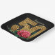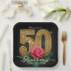 Elegant Black Gold Red Rose Floral 50th Birthday Paper Plate