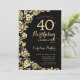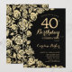 Elegant Black Gold Roses 40th Birthday Party Invitation
