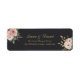 A refined return address label featuring a deep black background accented with delicate blush roses and elegant gold details. The classic floral arrangement and graceful typography add a polished finishing touch to your wedding envelopes.