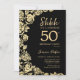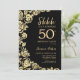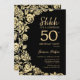 Elegant Black Gold Roses Surprise 50th Birthday Invitation