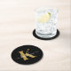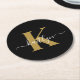 Elegant Black Gold Script Monogram Round Paper Coaster
