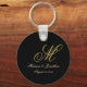 These elegant black custom monogram wedding key chains make a unique wedding favour to give to your guests or wedding party. The chic design template features the groom's last name monogram initial along with the bride's and groom's first names and wedding date in faux gold on a simple black background to personalise. Please check out our I Love Weddingz shop to find more selections in this collection. Designed by Susan Coffey.