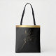 This elegant personalised typography wedding tote bag for the mother of the bride features a simple calligraphy design of modern faux gold script that reads "Mother of the Bride" on a black background with a top border of faux gold. Designed by Susan Coffey.
