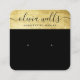 Stylish earring display holder with two printed hole "markers". Black background with image of gold foil accent.