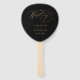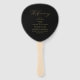 These elegant wedding program hand fans feature a faux gold typography design on a black background. Personalise with the bride and groom names and wedding date on the front and the details of your ceremony on the back. Designed by Susan Coffey.