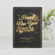 Elegant Black & Gold Sparkle Happy New Year 2026 Holiday Card