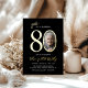 Make your celebration unforgettable with this elegant 80th Birthday Invitation, featuring a bold gold-foil-style “80” on a sleek black background. There is an oval photo frame perfect for showcasing a favorite photo. Modern typography and refined script accents create a classy, timeless look. All text is fully customizable, making it perfect for a 80th birthday party or 80th surprise celebration.