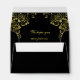 An elegant envelope to send out your wedding invitations. Part of a collection this black and gold wedding envelope has a floral swirl in the front corner, and also inside with an area for your personal message. Add your name and return address on this pre-printed envelope.