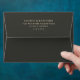This elegant wedding envelope features a sophisticated black background with crisp, gold typography that exudes formality and modernity. The centered layout highlights the names and address in a clean, serif font, creating a balanced and refined look perfect for special occasions. Its minimalist design focuses on clarity and elegance, making it ideal for weddings or formal events where simplicity meets sophistication.