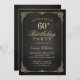 Elegant Black Gold Vintage Frame 60th Birthday Party Invitation.