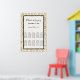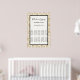 This design features an elegant gold vintage pattern. The black text is framed with a black border and opaque white background. The damask gold pattern sits elegantly in the background. The combination of the black and gold colours creates a sophisticated, trendy and chic style. Elegant wedding seating chart design with modern elements. The simple setup of the typography gives it a distinct style. Matching wedding invitations and other stationery items are also available.