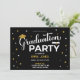 Elegant Black Gold White Stars Tassel Graduation Party Invitation
