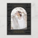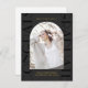 This modern photo graduation party invitation postcard features an elegant black background and big typography with a front geometric photo arch, and graduation party details and return address on the back.