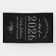 Celebrate your graduate with this sophisticated graduation party banner featuring an oversized display year as the design centerpiece in striking gray and white serif numerals on a sleek black background. Arched "Congratulations class of" text crowns the design with the graduate's name in flowing script, school in clean type, and a delicate flourish accent below. The modern design works beautifully as a backdrop for graduation party tables, photo walls, or open house celebrations. Easily personalize with the graduate's name and school to make it your own.