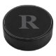 elegant black and gray monogram hockey puck ,