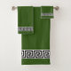 Elegant black Greek pattern on forest green Bath Towel Set.