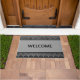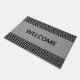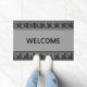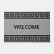 Elegant black Greek pattern on grey Welcome door mat. Welcome text can be personalised.