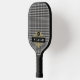 Elegant Black Grey Glen Plaid Gold Monogram Pickleball Paddle