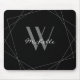 Elegant Black Grey Monogram Geometric Name Script Mouse Mat