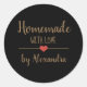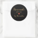 Elegant black homemade with love gold script clas classic round sticker