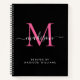Elegant Black Hot Pink Magenta Monogram Initial Script Name Recipe Notebook