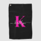 Elegant Black Hot Pink Script Monogram Golf Towel