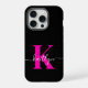 Elegant Black Hot Pink Script Monogram iPhone Case