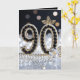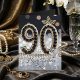 Celebrate a milestone ninetieth birthday with this luxurious and glamorous design, perfect for the woman who shines. The front features the number "90" elaborately crafted from faux black gemstones and bordered by classic white pearls. Accented with gold leaf details, a crystal rose, and a sparkling silver and black bokeh background, this design exudes sophistication.