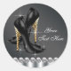 Pretty black leopard high heel shoes with elegant black and white diamond sparkle background birthday party stickers. You can add the text of your choice, or delete it.