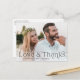 Elegant wedding thank you postcards featuring your full-bleed horizontal wedding photo with "Love and Thanks" in black lettering. Personalise these modern photo thank you postcards with your name for a timeless and sophisticated touch. The back of the photo wedding thank you postcard includes space for your return address and a personal message, making it an effortless way to share your gratitude with guests. Perfect for showcasing your favourite wedding photo while expressing your appreciation.