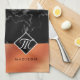 Elegant Black Marble & Bronze Foil Monogram Tea Towel