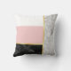 An elegant black marble pattern and pink colour block bordered with faux gold square throw pillow you can personalise by adding your name. Flat printed image, not metallic gold.