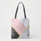 Elegant Black Marble Pink Colour Block With Name Tote Bag