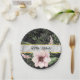 Elegant black marble pattern paper plates embellished with a beautiful pink floral. Personalise by adding your name to the white marble border edged in faux gold gradient. Flat printed image, NOT metallic gold.