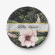 Elegant Black Marble Pink Floral With Name Paper Plate