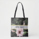 Elegant Black Marble Pink Floral With Name Tote Bag