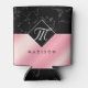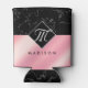 Elegant Black Marble & Pink Foil Monogram Can Cooler