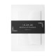 This wedding invitation belly band features a minimalist design with a sleek black background and crisp white text, creating an elegant contrast. The layout is centered, showcasing the date, names, and location in clean, sans-serif fonts that exude modern sophistication. Delicate vine motifs flank the text, adding a touch of natural charm without overwhelming the simple aesthetic. Perfect for couples seeking understated elegance, this design captures the anticipation and tranquility of a special day.
